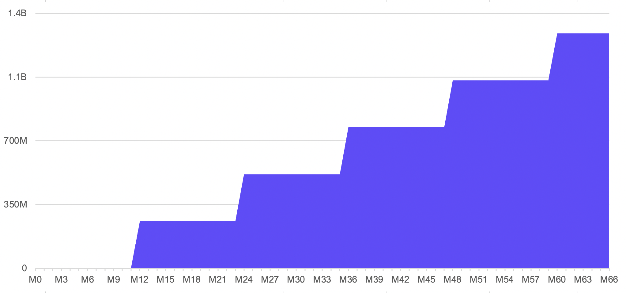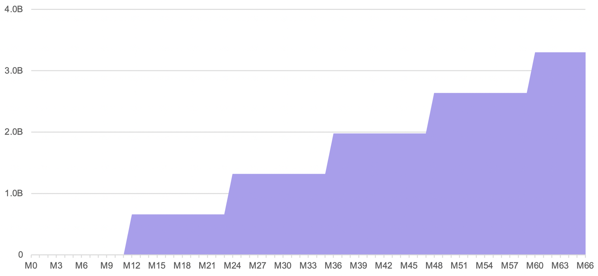24% (1.25B) of the 5.2B ONDO tokens would be unlocked at the Public Launch. The remaining tokens (3.96B) would be subject to the unlock schedule shown below.
